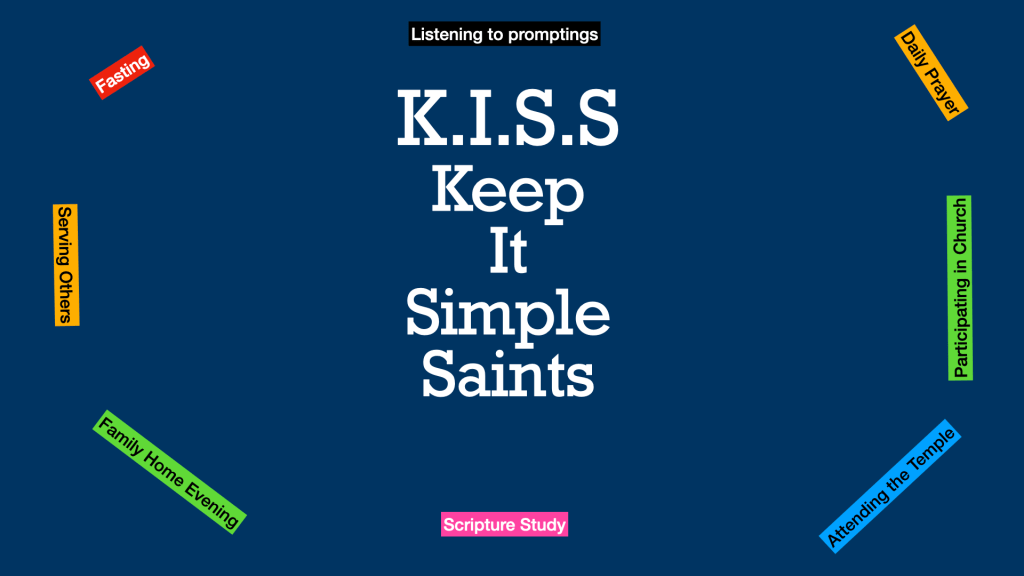 The gospel is, as Elder Stevenson states, simply beautiful and beautifully simple. If we follow the K.I.S.S (Keep It Simple Saints) method, our testimonies will grow, our relationship with God will increase, and we will one day partake of the fruit Lehi saw in his vision. A fruit that “[fills the] soul with exceedingly great joy” (1 Nephi 8:12)