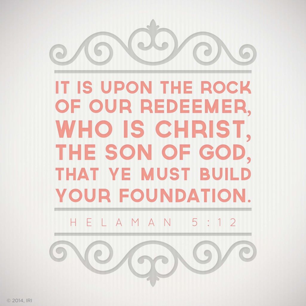 My favorite scripture is found in Helaman 5:12. This is Helaman speaking to his sons Nephi and Lehi. He is talking to them about the importance of building our spiritual foundation on Jesus Christ. Jesus Christ is the only sure foundation upon which we can build and manage the storms of this life. The scripture reads as follows: